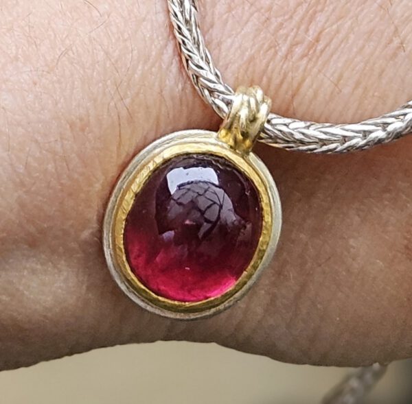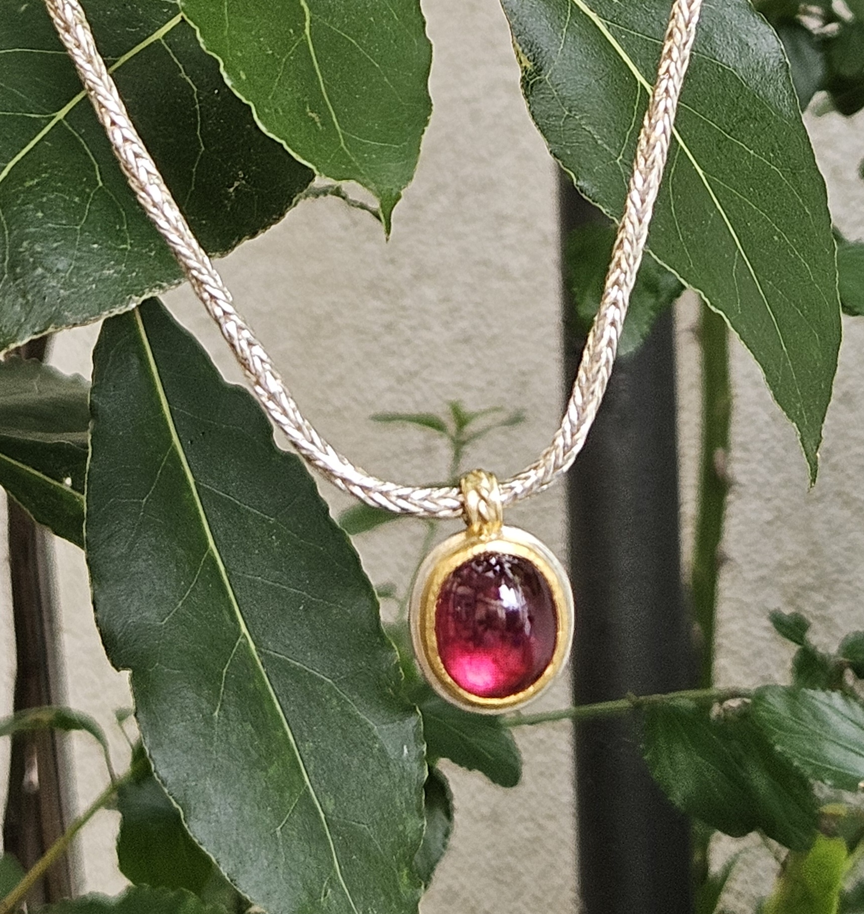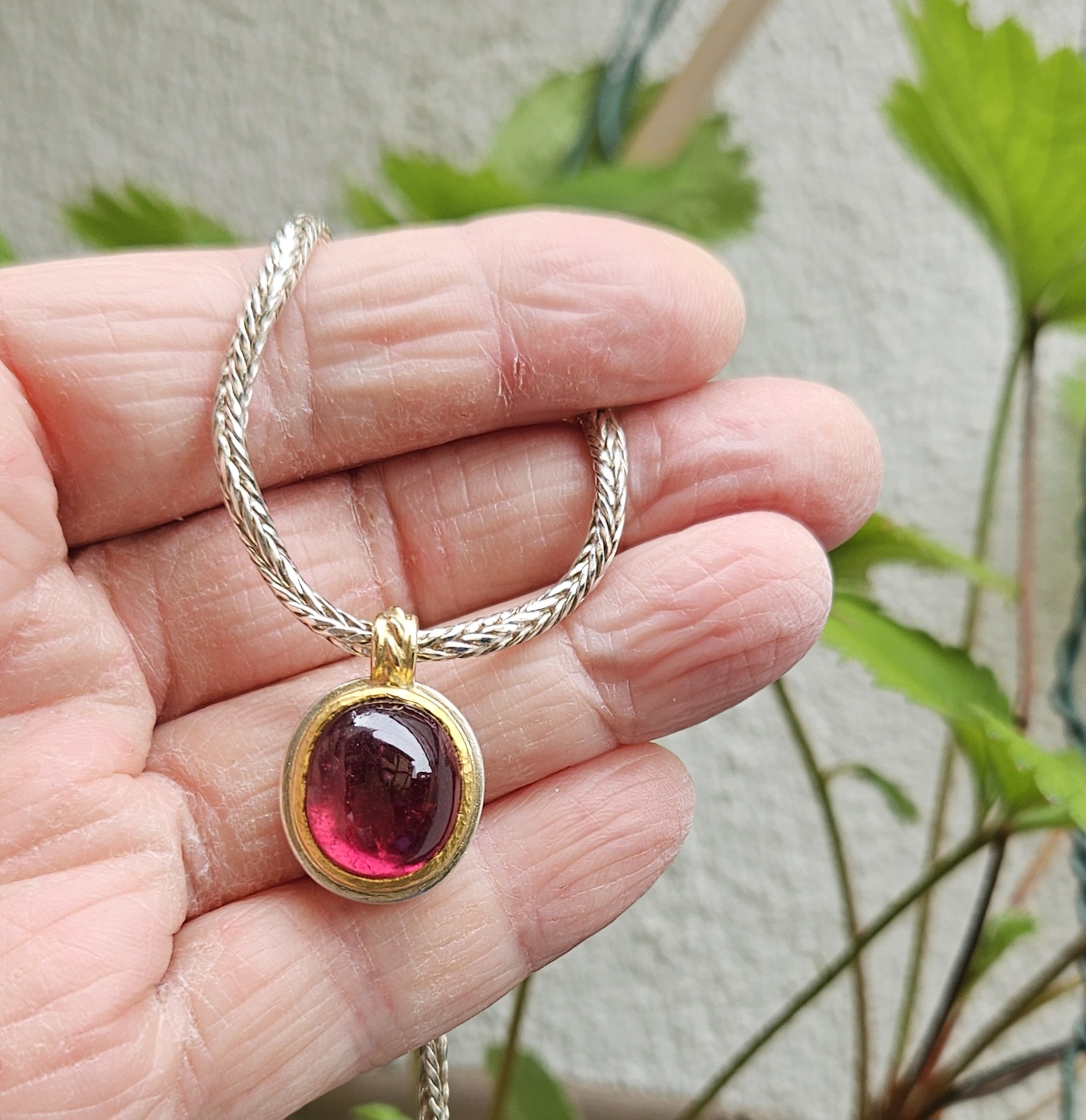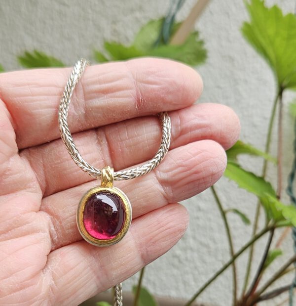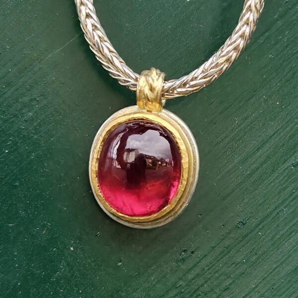 Anhänger mit rotem Turmalin aus 750 Gold, Feingold und Silber